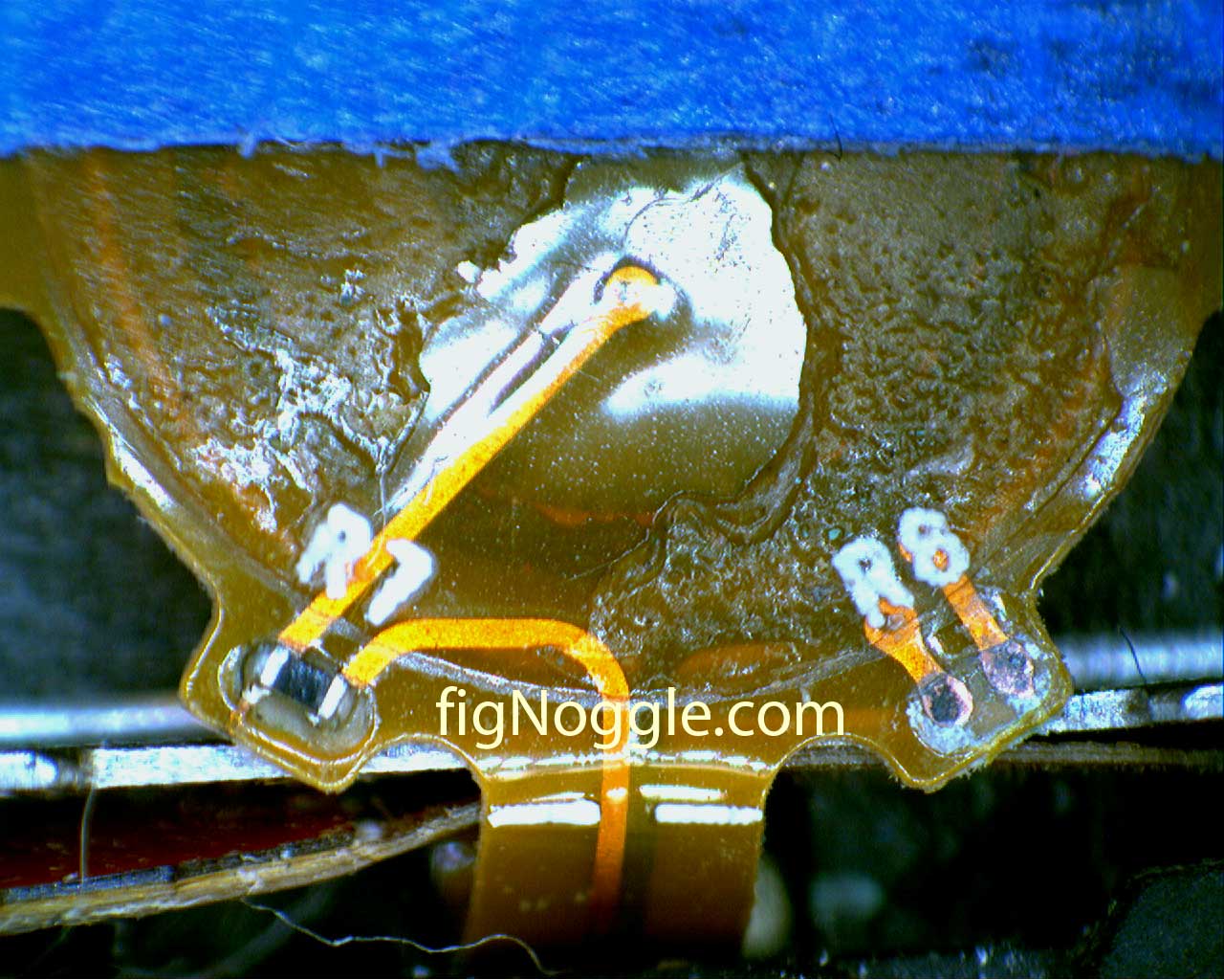 resistor (r8) and a presumably good resistor (r7) measured at 3.270 kOhms.
