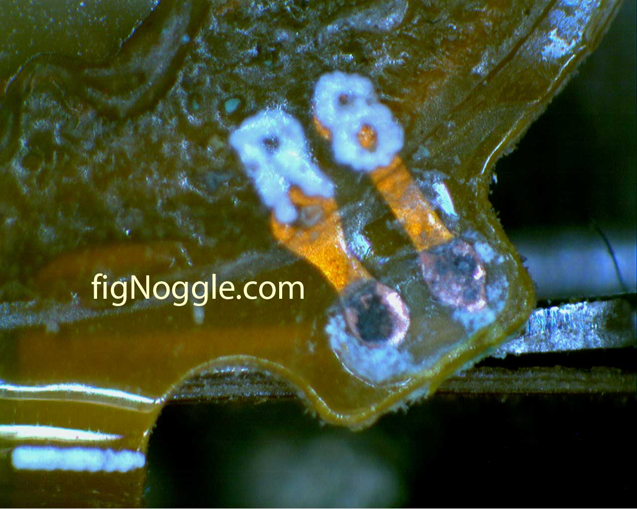 that the home button had some corrosion. taking a razor blade, i cut away at the
