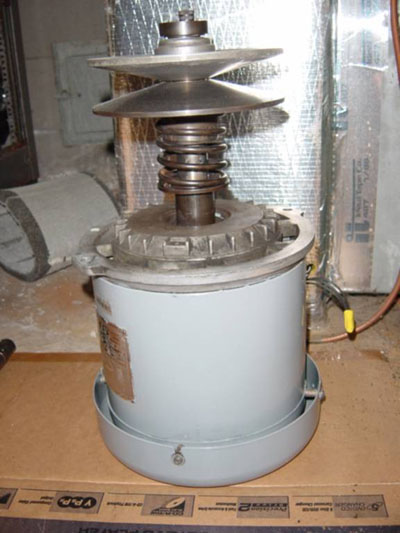 spring is outermost on the shaft and the fixed sheve is next to the motor. The Boss has the spring next to the motor