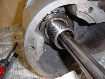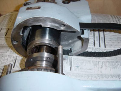 Here I have the cog belt pulley removed from the ball nut. You can see the ball bearing recirculating