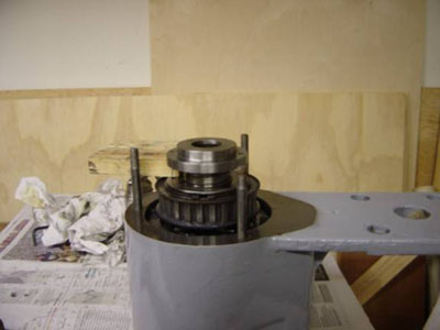 This is the bottom of the Z axis drive assembly. The cog pulley that is driven by the stepper