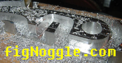 | using a 1/16" dia. 4-flute, contoured and pocketed some text in a box. |